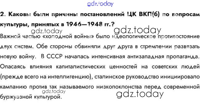 На страницах сайта gdz.today вы найдете учебный и вспомогательный материал, направленный на улучшения знаний школьной программы. ГДЗ - онлайн мир знаний Думаем, сравниваем, размышляем Решение к §29 2 Учебнику по Истории для 10 класса Горинов, Данилов Просвещение 2016