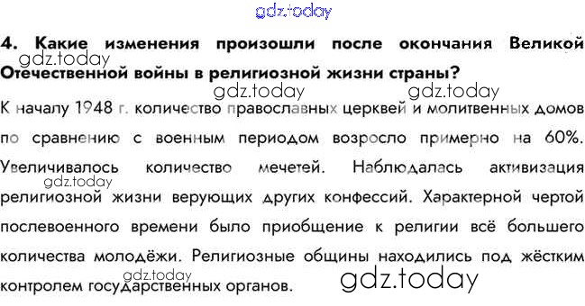 На страницах сайта gdz.today вы найдете учебный и вспомогательный материал, направленный на улучшения знаний школьной программы. ГДЗ - онлайн мир знаний Вопросы и задания для работы с текстом параграфа Национальный вопрос и национальная политика в послевоенном СССР 4 Учебнику по Истории для 10 класса Горинов, Данилов Просвещение 2016