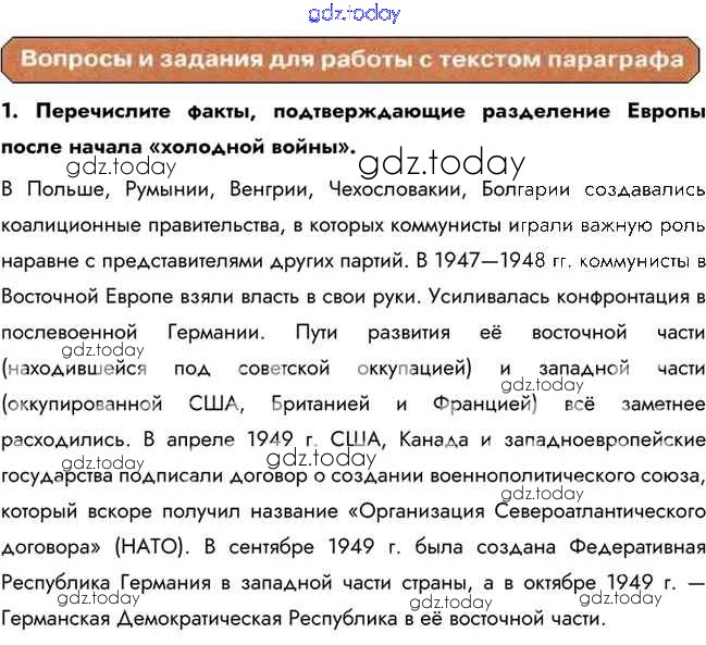 На страницах сайта gdz.today вы найдете учебный и вспомогательный материал, направленный на улучшения знаний школьной программы. ГДЗ - онлайн мир знаний Вопросы и задания для работы с текстом параграфа Решение к §30 1 Учебнику по Истории для 10 класса Горинов, Данилов Просвещение 2016