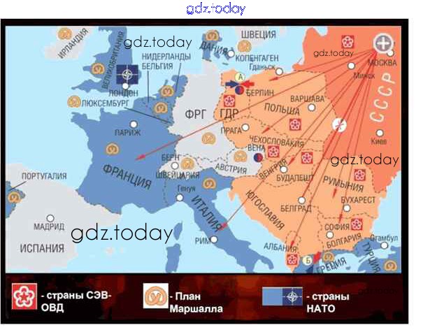 На страницах сайта gdz.today вы найдете учебный и вспомогательный материал, направленный на улучшения знаний школьной программы. ГДЗ - онлайн мир знаний Работаем с картой Решение к §30 2 Учебнику по Истории для 10 класса Горинов, Данилов Просвещение 2016