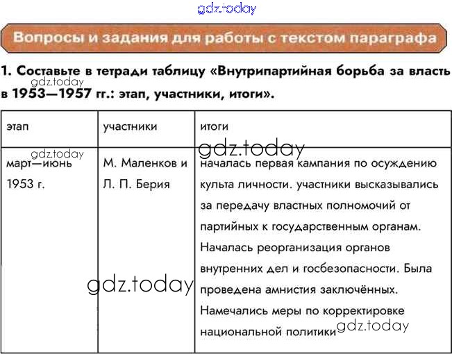 На страницах сайта gdz.today вы найдете учебный и вспомогательный материал, направленный на улучшения знаний школьной программы. ГДЗ - онлайн мир знаний Вопросы и задания для работы с текстом параграфа Решение к §31 1 Учебнику по Истории для 10 класса Горинов, Данилов Просвещение 2016