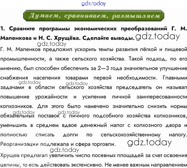 На страницах сайта gdz.today вы найдете учебный и вспомогательный материал, направленный на улучшения знаний школьной программы. ГДЗ - онлайн мир знаний Думаем, сравниваем, размышляем Решение к §32 1 Учебнику по Истории для 10 класса Горинов, Данилов Просвещение 2016