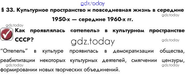 На страницах сайта gdz.today вы найдете учебный и вспомогательный материал, направленный на улучшения знаний школьной программы. ГДЗ - онлайн мир знаний Вопрос в начале параграфа Решение к §33 1 Учебнику по Истории для 10 класса Горинов, Данилов Просвещение 2016