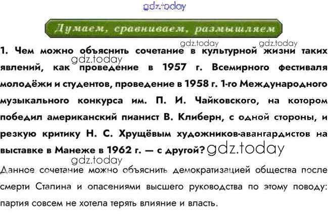Ответы к Думаем, сравниваем, размышляем Решение к §33 1 Учебнику по Истории для 10 класса Горинов, Данилов Просвещение 2016