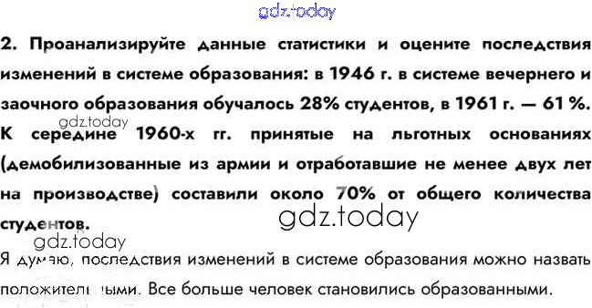 На страницах сайта gdz.today вы найдете учебный и вспомогательный материал, направленный на улучшения знаний школьной программы. ГДЗ - онлайн мир знаний Думаем, сравниваем, размышляем Решение к §33 2 Учебнику по Истории для 10 класса Горинов, Данилов Просвещение 2016