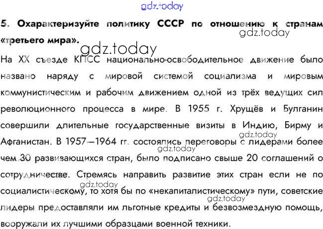 На страницах сайта gdz.today вы найдете учебный и вспомогательный материал, направленный на улучшения знаний школьной программы. ГДЗ - онлайн мир знаний Вопросы и задания для работы с текстом параграфа Решение к §34 5 Учебнику по Истории для 10 класса Горинов, Данилов Просвещение 2016