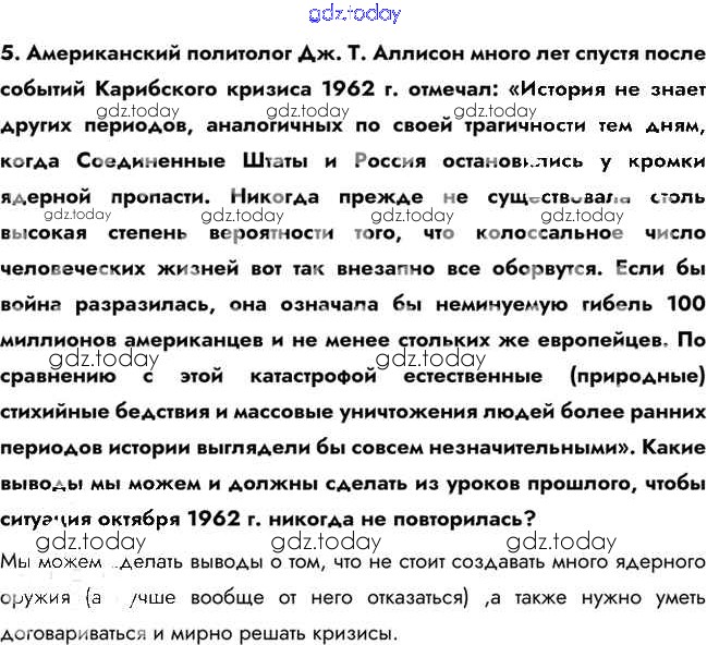 На страницах сайта gdz.today вы найдете учебный и вспомогательный материал, направленный на улучшения знаний школьной программы. ГДЗ - онлайн мир знаний Думаем, сравниваем, размышляем Решение к §34 5 Учебнику по Истории для 10 класса Горинов, Данилов Просвещение 2016
