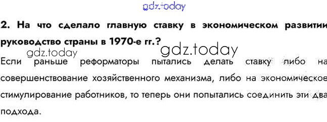 На страницах сайта gdz.today вы найдете учебный и вспомогательный материал, направленный на улучшения знаний школьной программы. ГДЗ - онлайн мир знаний Вопросы и задания для работы с текстом параграфа Решение к §36 2 Учебнику по Истории для 10 класса Горинов, Данилов Просвещение 2016