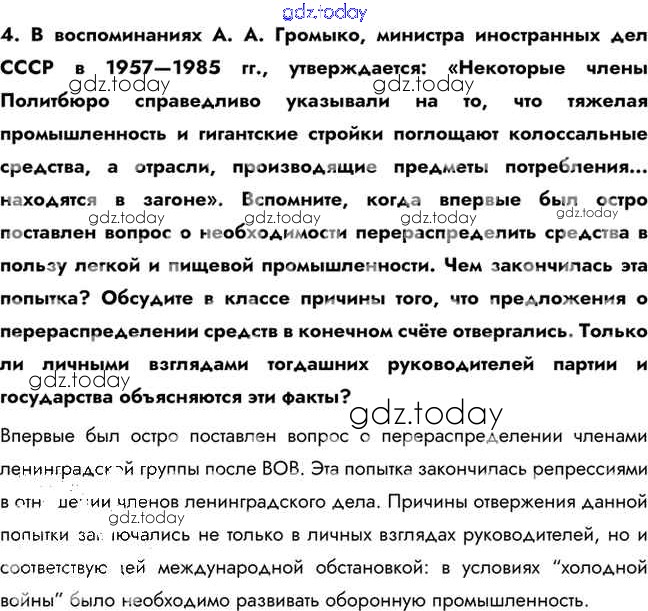 На страницах сайта gdz.today вы найдете учебный и вспомогательный материал, направленный на улучшения знаний школьной программы. ГДЗ - онлайн мир знаний Думаем, сравниваем, размышляем Решение к §36 4 Учебнику по Истории для 10 класса Горинов, Данилов Просвещение 2016