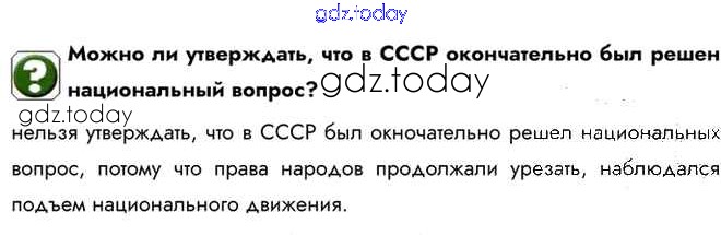 На страницах сайта gdz.today вы найдете учебный и вспомогательный материал, направленный на улучшения знаний школьной программы. ГДЗ - онлайн мир знаний Вопрос Национальная политика и национальные движения в 1960-х — середине 1980-х гг. 1 Учебнику по Истории для 10 класса Горинов, Данилов Просвещение 2016