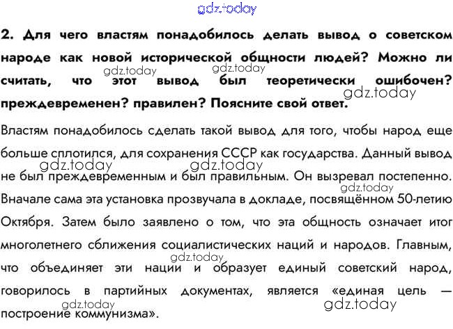 На страницах сайта gdz.today вы найдете учебный и вспомогательный материал, направленный на улучшения знаний школьной программы. ГДЗ - онлайн мир знаний Вопросы и задания для работы с текстом параграфа Национальная политика и национальные движения в 1960-х — середине 1980-х гг. 2 Учебнику по Истории для 10 класса Горинов, Данилов Просвещение 2016