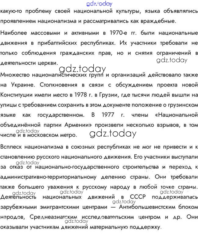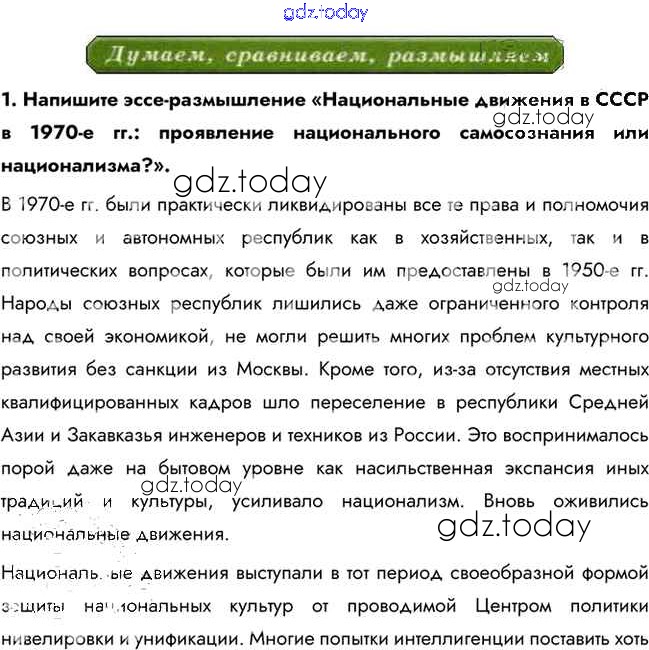 На страницах сайта gdz.today вы найдете учебный и вспомогательный материал, направленный на улучшения знаний школьной программы. ГДЗ - онлайн мир знаний Думаем, сравниваем, размышляем Национальная политика и национальные движения в 1960-х — середине 1980-х гг. 1 Учебнику по Истории для 10 класса Горинов, Данилов Просвещение 2016
