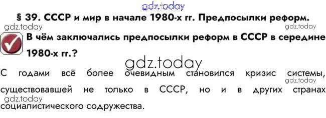 На страницах сайта gdz.today вы найдете учебный и вспомогательный материал, направленный на улучшения знаний школьной программы. ГДЗ - онлайн мир знаний Вопрос в начале параграфа Решение к §39 1 Учебнику по Истории для 10 класса Горинов, Данилов Просвещение 2016
