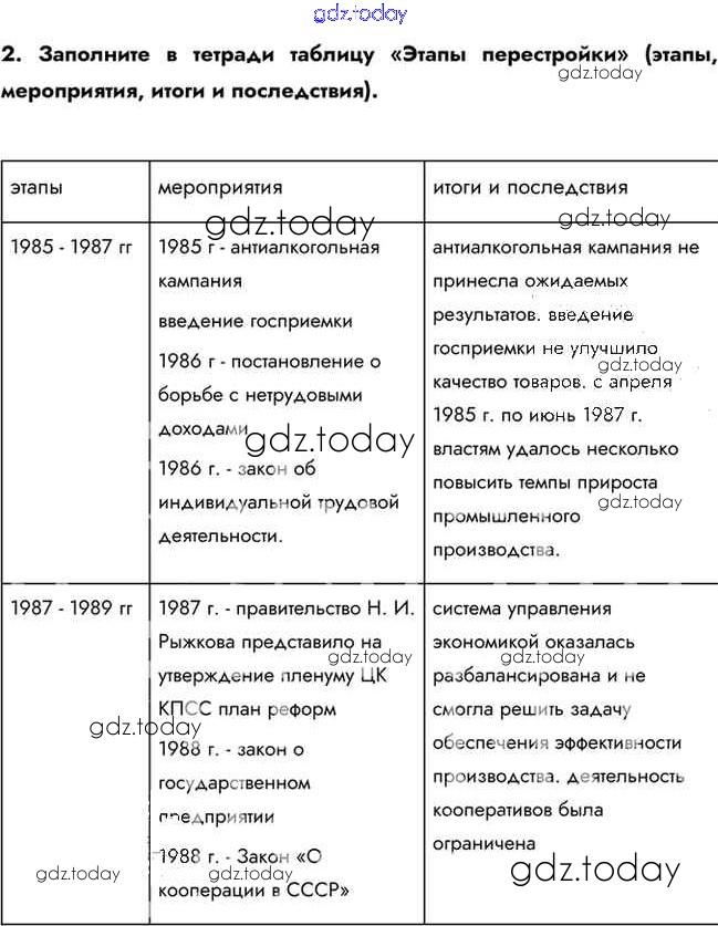 На страницах сайта gdz.today вы найдете учебный и вспомогательный материал, направленный на улучшения знаний школьной программы. ГДЗ - онлайн мир знаний Вопросы и задания для работы с текстом параграфа Решение к §40 2 Учебнику по Истории для 10 класса Горинов, Данилов Просвещение 2016