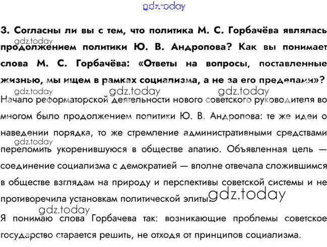 На страницах сайта gdz.today вы найдете учебный и вспомогательный материал, направленный на улучшения знаний школьной программы. ГДЗ - онлайн мир знаний Думаем, сравниваем, размышляем Решение к §40 3 Учебнику по Истории для 10 класса Горинов, Данилов Просвещение 2016