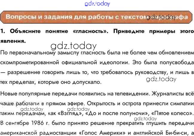 На страницах сайта gdz.today вы найдете учебный и вспомогательный материал, направленный на улучшения знаний школьной программы. ГДЗ - онлайн мир знаний Вопросы и задания для работы с текстом параграфа Решение к §41 1 Учебнику по Истории для 10 класса Горинов, Данилов Просвещение 2016