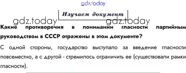 На страницах сайта gdz.today вы найдете учебный и вспомогательный материал, направленный на улучшения знаний школьной программы. ГДЗ - онлайн мир знаний Изучаем документ Решение к §41 1 Учебнику по Истории для 10 класса Горинов, Данилов Просвещение 2016