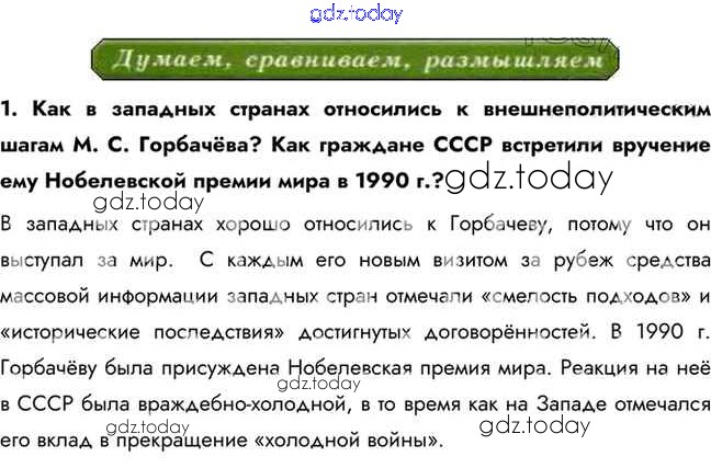 На страницах сайта gdz.today вы найдете учебный и вспомогательный материал, направленный на улучшения знаний школьной программы. ГДЗ - онлайн мир знаний Думаем, сравниваем, размышляем Решение к §43 1 Учебнику по Истории для 10 класса Горинов, Данилов Просвещение 2016