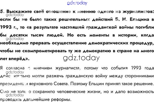 На страницах сайта gdz.today вы найдете учебный и вспомогательный материал, направленный на улучшения знаний школьной программы. ГДЗ - онлайн мир знаний Думаем, сравниваем, размышляем Решение к §46 5 Учебнику по Истории для 10 класса Горинов, Данилов Просвещение 2016