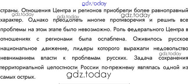 На страницах сайта gdz.today вы найдете учебный и вспомогательный материал, направленный на улучшения знаний школьной программы. ГДЗ - онлайн мир знаний Вопросы и задания для работы с текстом параграфа Межнациональные отношения и национальная политика в 1990-е гг. 6 Учебнику по Истории для 10 класса Горинов, Данилов Просвещение 2016