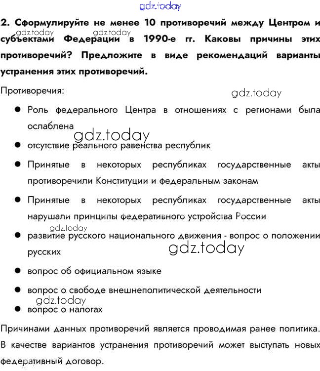На страницах сайта gdz.today вы найдете учебный и вспомогательный материал, направленный на улучшения знаний школьной программы. ГДЗ - онлайн мир знаний Думаем, сравниваем, размышляем Межнациональные отношения и национальная политика в 1990-е гг. 2 Учебнику по Истории для 10 класса Горинов, Данилов Просвещение 2016