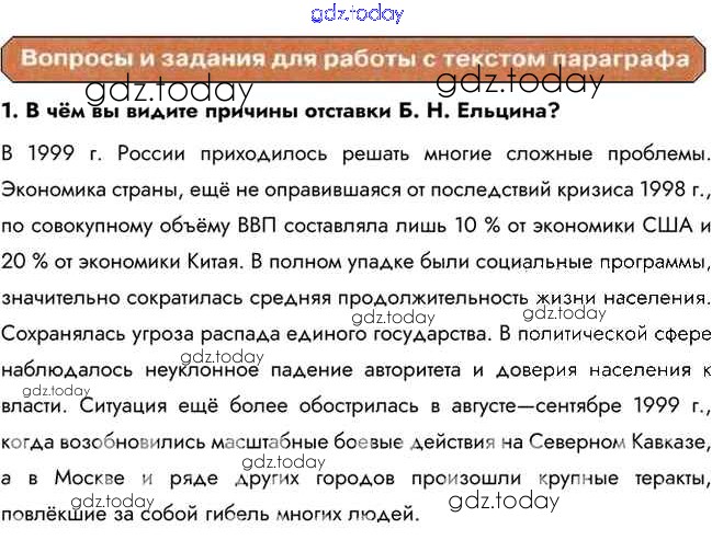 На страницах сайта gdz.today вы найдете учебный и вспомогательный материал, направленный на улучшения знаний школьной программы. ГДЗ - онлайн мир знаний Вопросы и задания для работы с текстом параграфа Решение к §49 1 Учебнику по Истории для 10 класса Горинов, Данилов Просвещение 2016