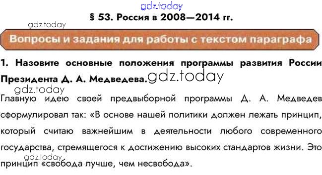 На страницах сайта gdz.today вы найдете учебный и вспомогательный материал, направленный на улучшения знаний школьной программы. ГДЗ - онлайн мир знаний Вопросы и задания для работы с текстом параграфа Решение к §53 1 Учебнику по Истории для 10 класса Горинов, Данилов Просвещение 2016