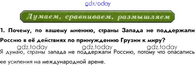 На страницах сайта gdz.today вы найдете учебный и вспомогательный материал, направленный на улучшения знаний школьной программы. ГДЗ - онлайн мир знаний Думаем, сравниваем, размышляем Решение к §53 1 Учебнику по Истории для 10 класса Горинов, Данилов Просвещение 2016