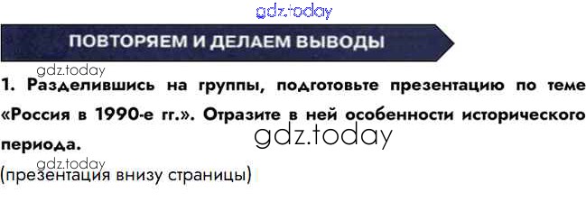 На страницах сайта gdz.today вы найдете учебный и вспомогательный материал, направленный на улучшения знаний школьной программы. ГДЗ - онлайн мир знаний Повторяем и делаем выводы. Глава 5 1 Учебнику по Истории для 10 класса Горинов, Данилов Просвещение 2016