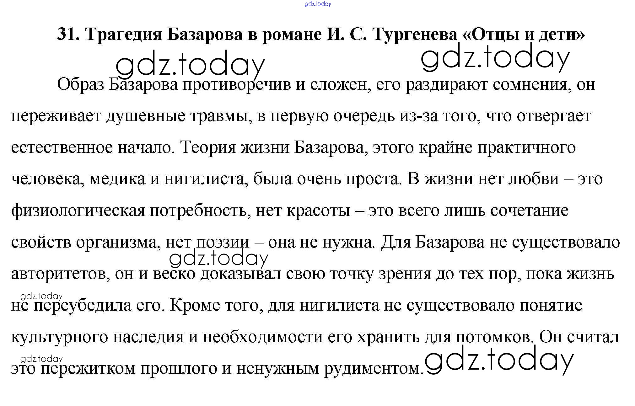 На страницах сайта gdz.today вы найдете учебный и вспомогательный материал, направленный на улучшения знаний школьной программы. ГДЗ - онлайн мир знаний Сочинения 31. Трагедия Базарова в романе И. С. Тургенева «Отцы и дети» Сочинениям по Литературе для 10 класса Еременко ВАКО Сам себе репетитор 2020
