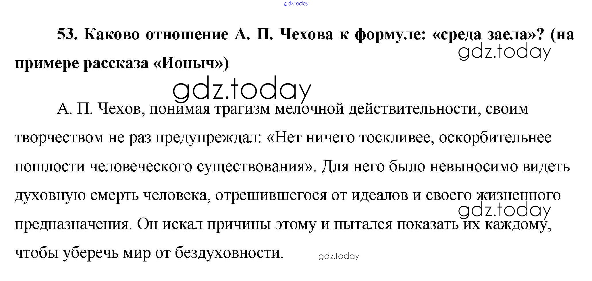 На страницах сайта gdz.today вы найдете учебный и вспомогательный материал, направленный на улучшения знаний школьной программы. ГДЗ - онлайн мир знаний Сочинения 53. Каково отношение А. П. Чехова к формуле: «среда заела»? (на примере рассказа «Ионыч») Сочинениям по Литературе для 10 класса Еременко ВАКО Сам себе репетитор 2020