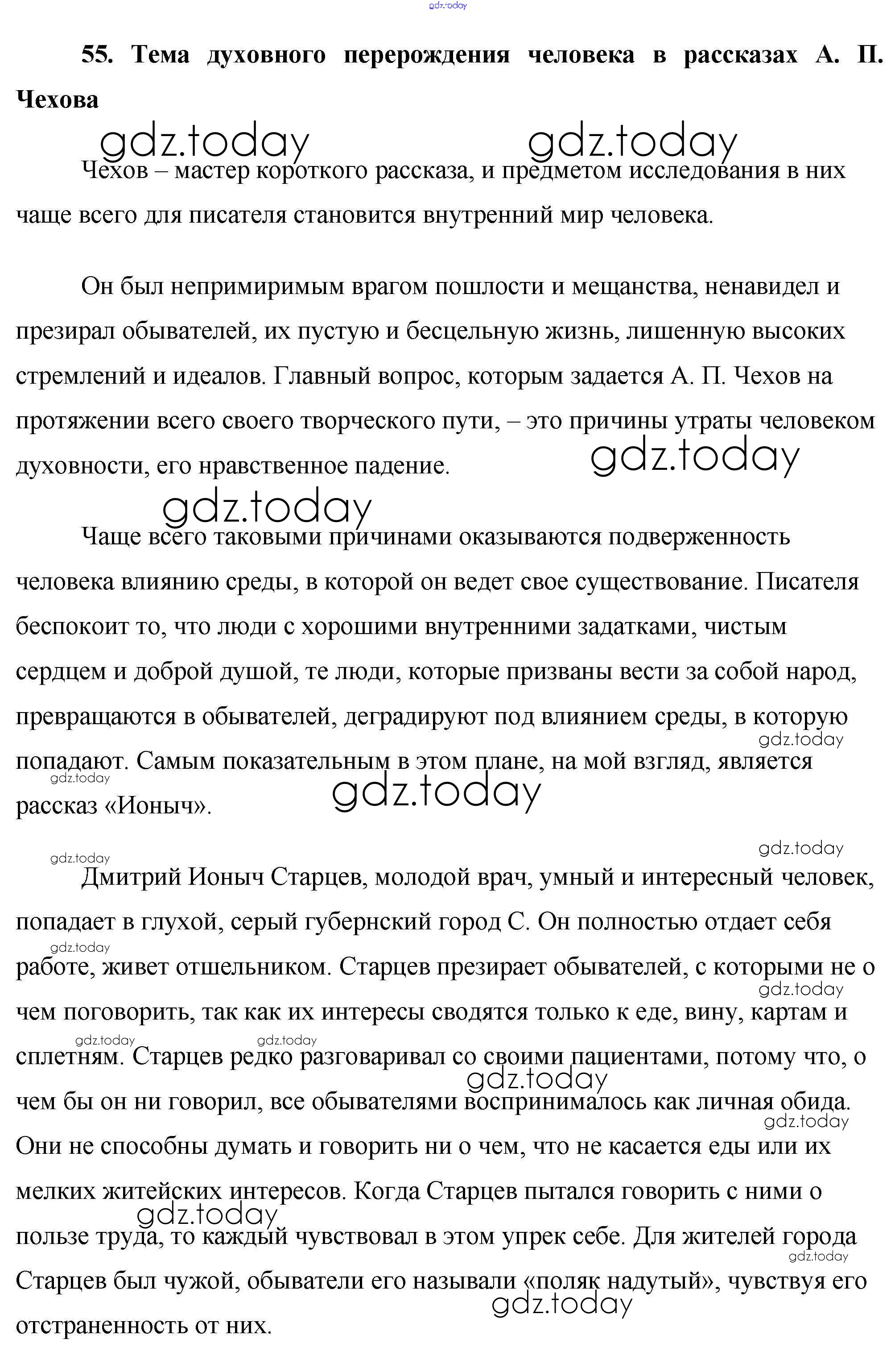 На страницах сайта gdz.today вы найдете учебный и вспомогательный материал, направленный на улучшения знаний школьной программы. ГДЗ - онлайн мир знаний Сочинения 55. Тема духовного перерождения человека в рассказах А. П. Чехова Сочинениям по Литературе для 10 класса Еременко ВАКО Сам себе репетитор 2020