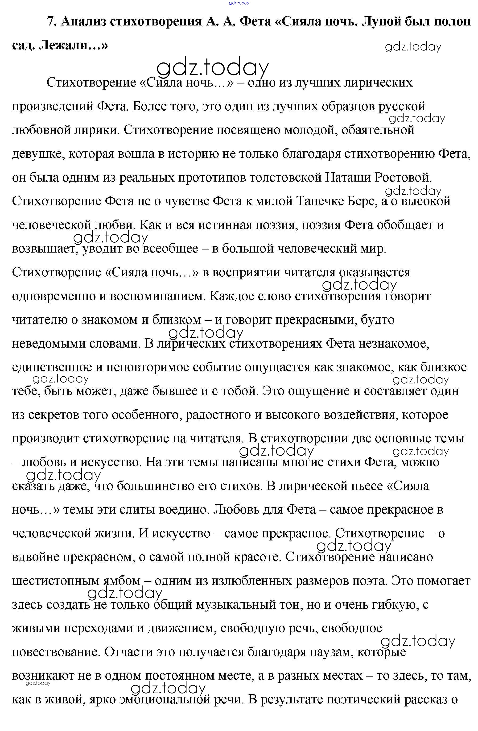 На страницах сайта gdz.today вы найдете учебный и вспомогательный материал, направленный на улучшения знаний школьной программы. ГДЗ - онлайн мир знаний Сочинения 7. Анализ стихотворения А. А. Фета «Сияла ночь. Луной был полон сад. Лежали…» Сочинениям по Литературе для 10 класса Еременко ВАКО Сам себе репетитор 2020
