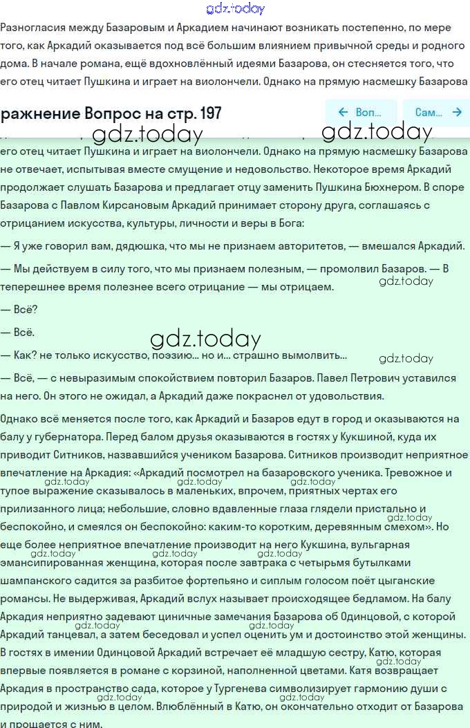 На страницах сайта gdz.today вы найдете учебный и вспомогательный материал, направленный на улучшения знаний школьной программы. ГДЗ - онлайн мир знаний Решение. Часть 1. Страницы 197 Учебнику по Литературе для 10 класса Зинин, Сахаров Базовый уровень Русское слово Инновационная школа 2019