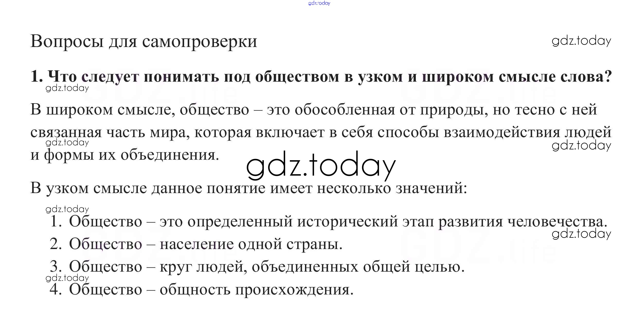 На страницах сайта gdz.today вы найдете учебный и вспомогательный материал, направленный на улучшения знаний школьной программы. ГДЗ - онлайн мир знаний Вопросы для самопроверки §1. Что такое общество 1 Учебнику по Обществознанию для 10 класса Боголюбов, Аверьянов Базовый уровень Просвещение 2015