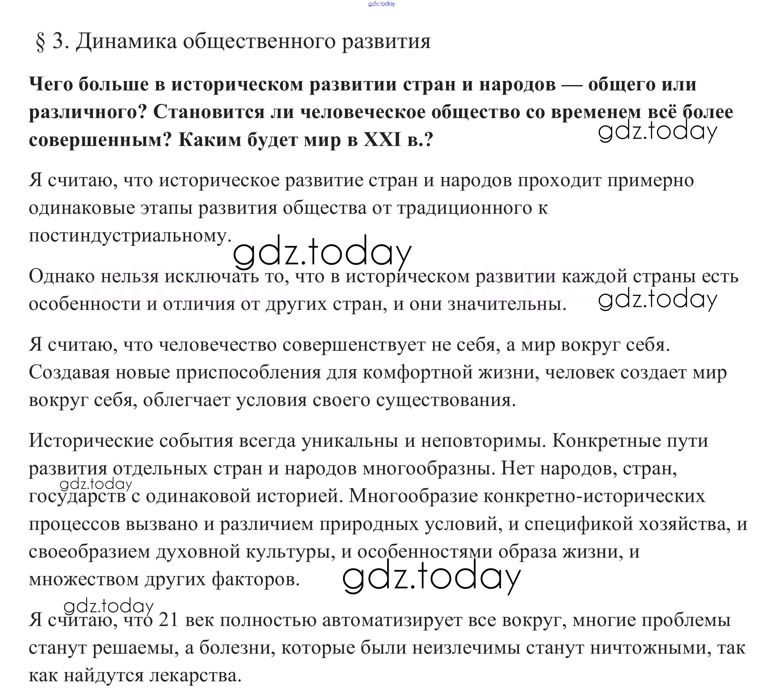 На страницах сайта gdz.today вы найдете учебный и вспомогательный материал, направленный на улучшения знаний школьной программы. ГДЗ - онлайн мир знаний В начале параграфа §3. Динамика общественного развития 1 Учебнику по Обществознанию для 10 класса Боголюбов, Аверьянов Базовый уровень Просвещение 2015