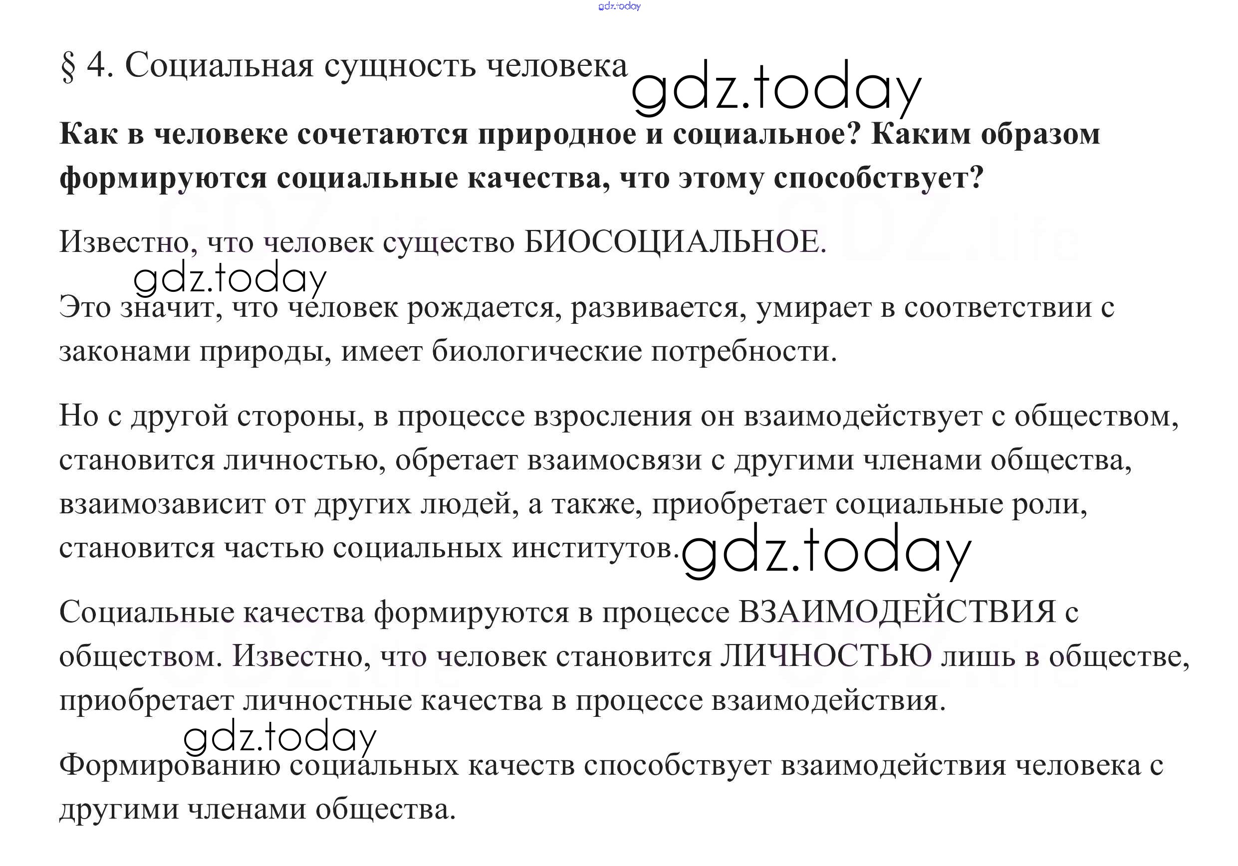 На страницах сайта gdz.today вы найдете учебный и вспомогательный материал, направленный на улучшения знаний школьной программы. ГДЗ - онлайн мир знаний В начале параграфа §4. Социальная сущность человека 1 Учебнику по Обществознанию для 10 класса Боголюбов, Аверьянов Базовый уровень Просвещение 2015