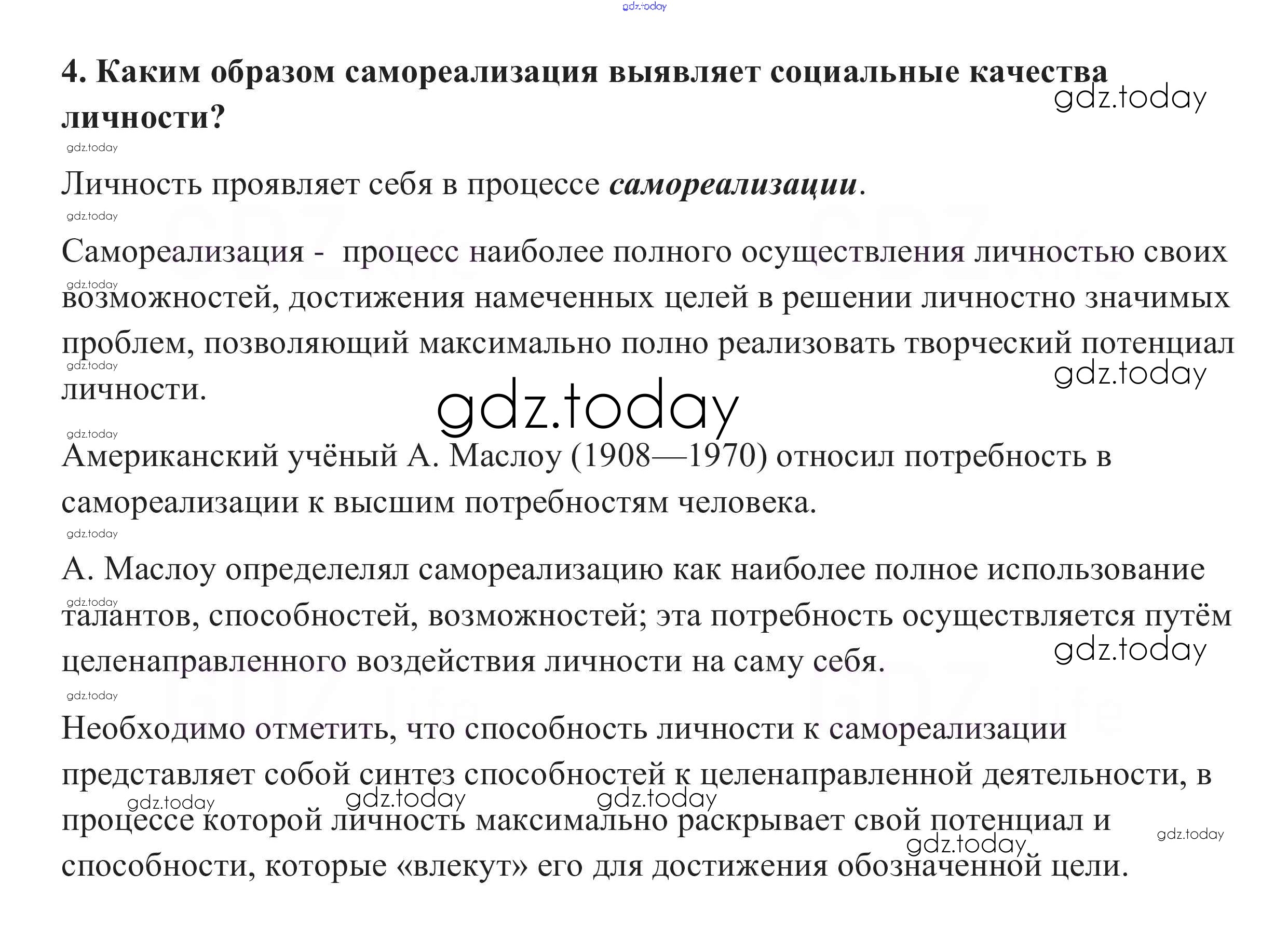 На страницах сайта gdz.today вы найдете учебный и вспомогательный материал, направленный на улучшения знаний школьной программы. ГДЗ - онлайн мир знаний Вопросы для самопроверки §4. Социальная сущность человека 4 Учебнику по Обществознанию для 10 класса Боголюбов, Аверьянов Базовый уровень Просвещение 2015
