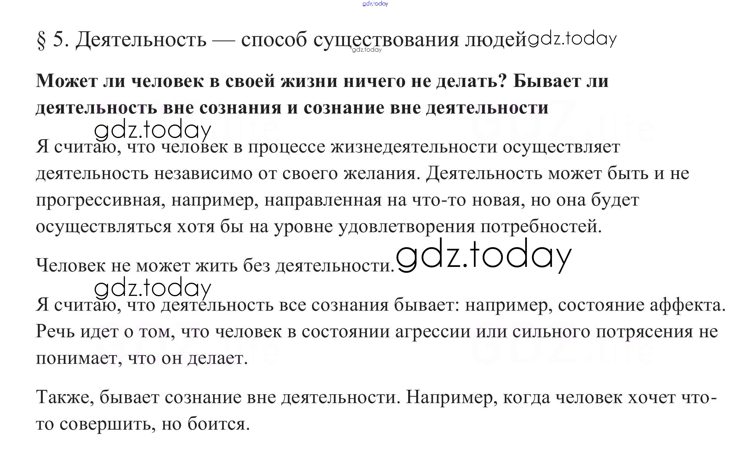 На страницах сайта gdz.today вы найдете учебный и вспомогательный материал, направленный на улучшения знаний школьной программы. ГДЗ - онлайн мир знаний В начале параграфа §5. Деятельность - способ существования людей 1 Учебнику по Обществознанию для 10 класса Боголюбов, Аверьянов Базовый уровень Просвещение 2015