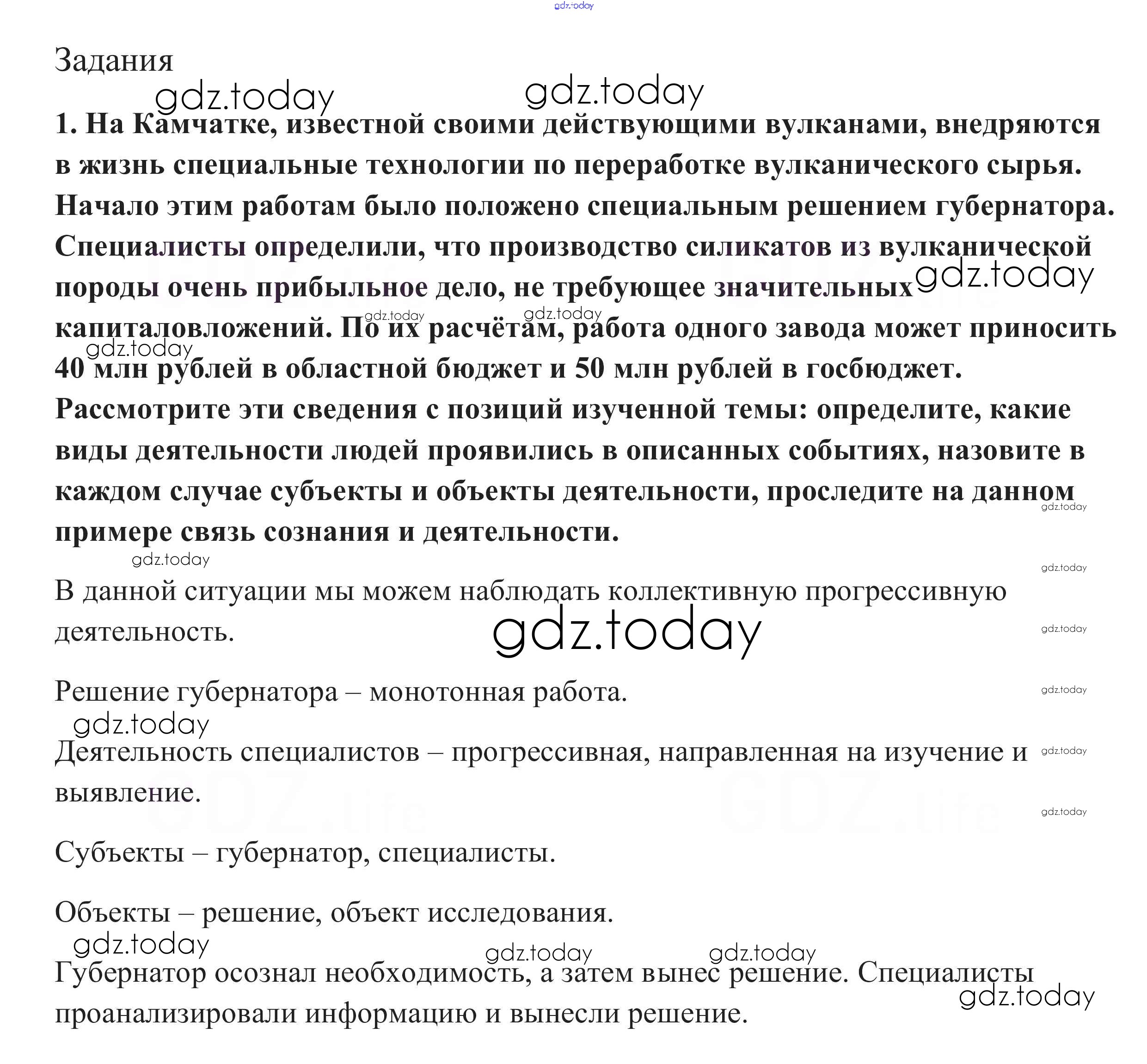 На страницах сайта gdz.today вы найдете учебный и вспомогательный материал, направленный на улучшения знаний школьной программы. ГДЗ - онлайн мир знаний Задания §5. Деятельность - способ существования людей 1 Учебнику по Обществознанию для 10 класса Боголюбов, Аверьянов Базовый уровень Просвещение 2015