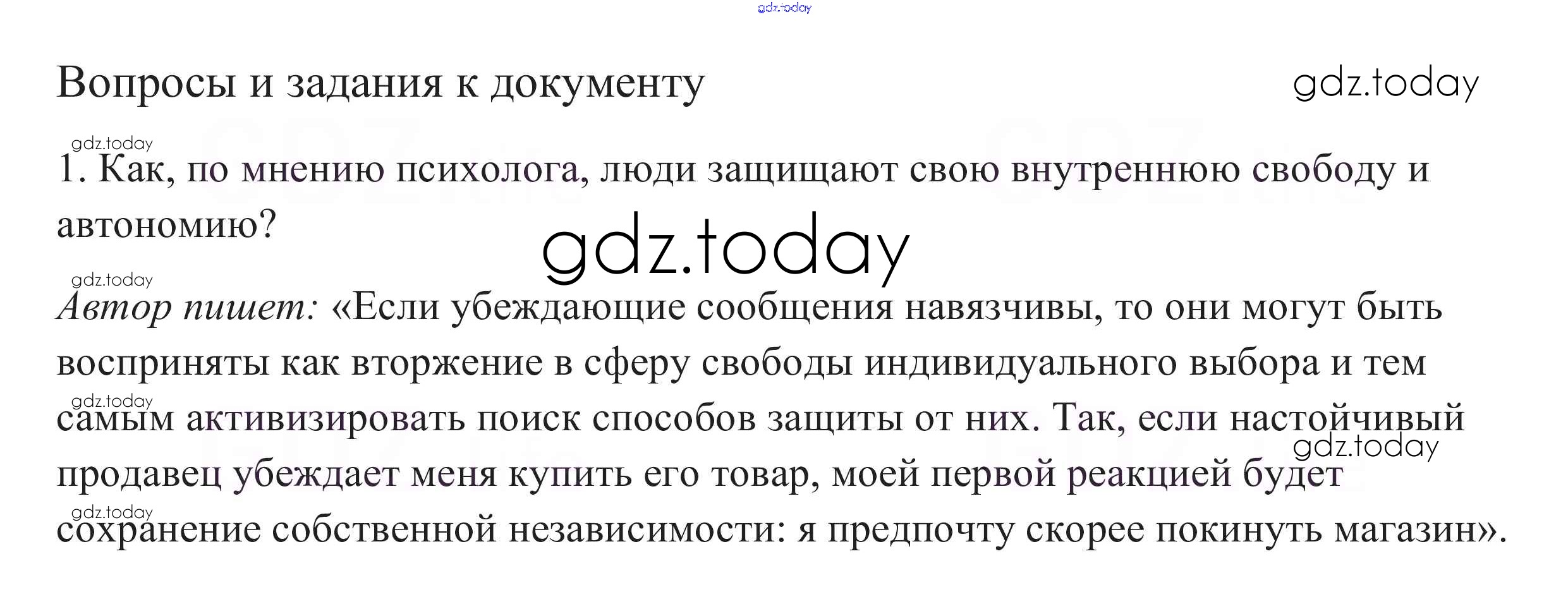Ответы к Вопросы и задания к документу §7. Свобода и необходимость в деятельности человека 1 Учебнику по Обществознанию для 10 класса Боголюбов, Аверьянов Базовый уровень Просвещение 2015