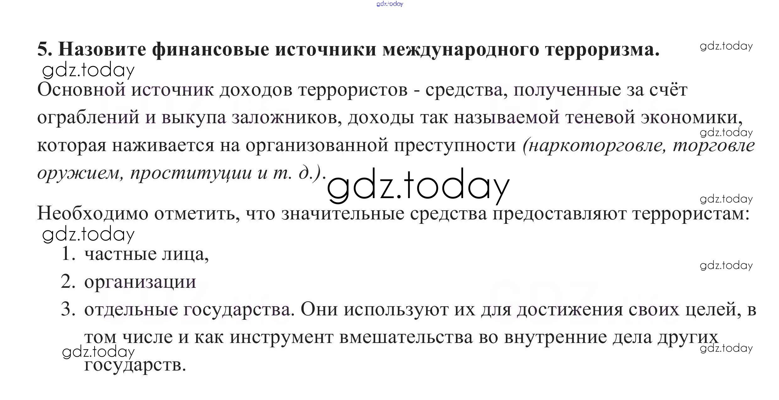 На страницах сайта gdz.today вы найдете учебный и вспомогательный материал, направленный на улучшения знаний школьной программы. ГДЗ - онлайн мир знаний Вопросы для самопроверки §9. Глобальная угроза международного терроризма 5 Учебнику по Обществознанию для 10 класса Боголюбов, Аверьянов Базовый уровень Просвещение 2015