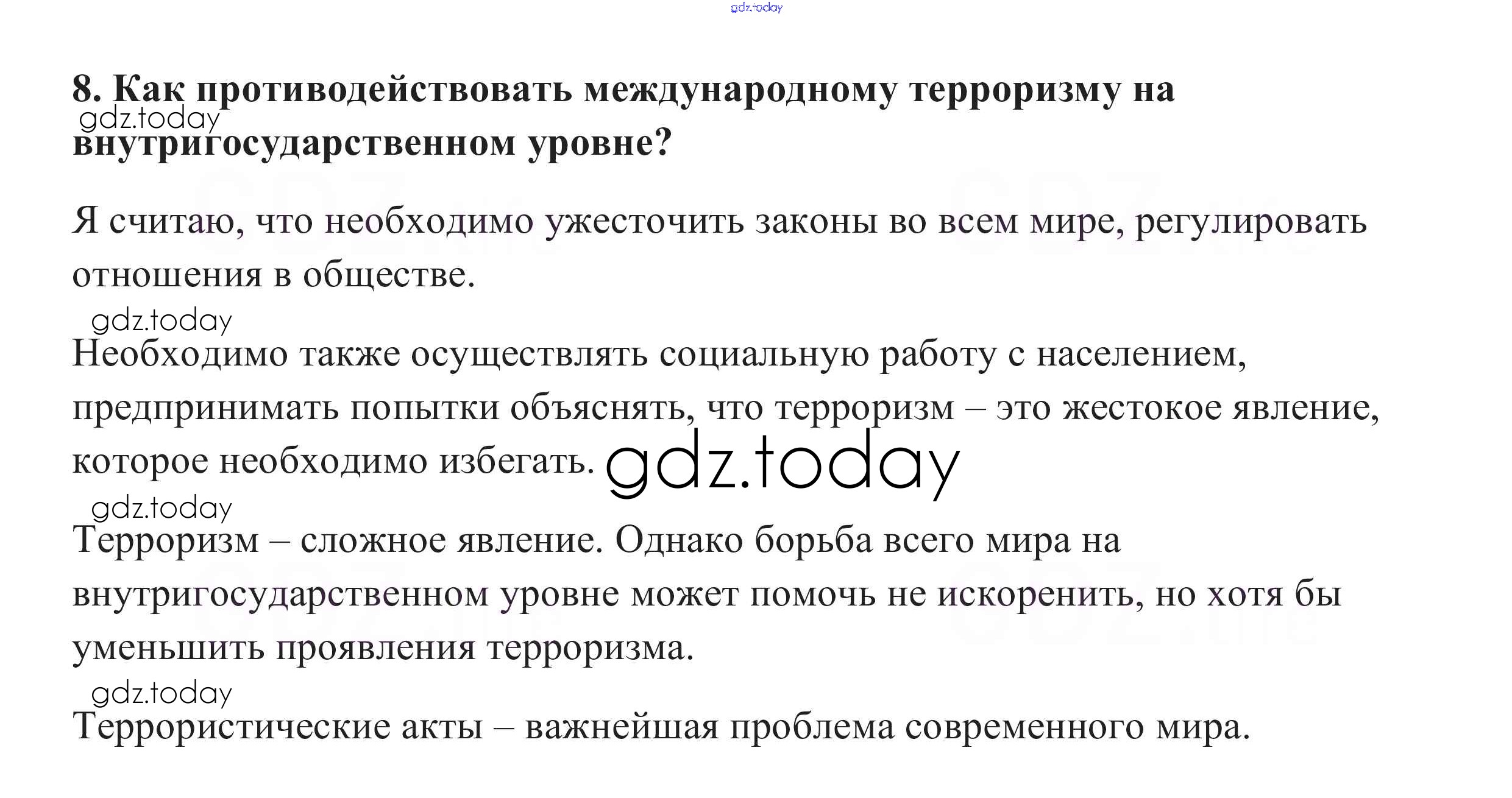 На страницах сайта gdz.today вы найдете учебный и вспомогательный материал, направленный на улучшения знаний школьной программы. ГДЗ - онлайн мир знаний Вопросы для самопроверки §9. Глобальная угроза международного терроризма 8 Учебнику по Обществознанию для 10 класса Боголюбов, Аверьянов Базовый уровень Просвещение 2015