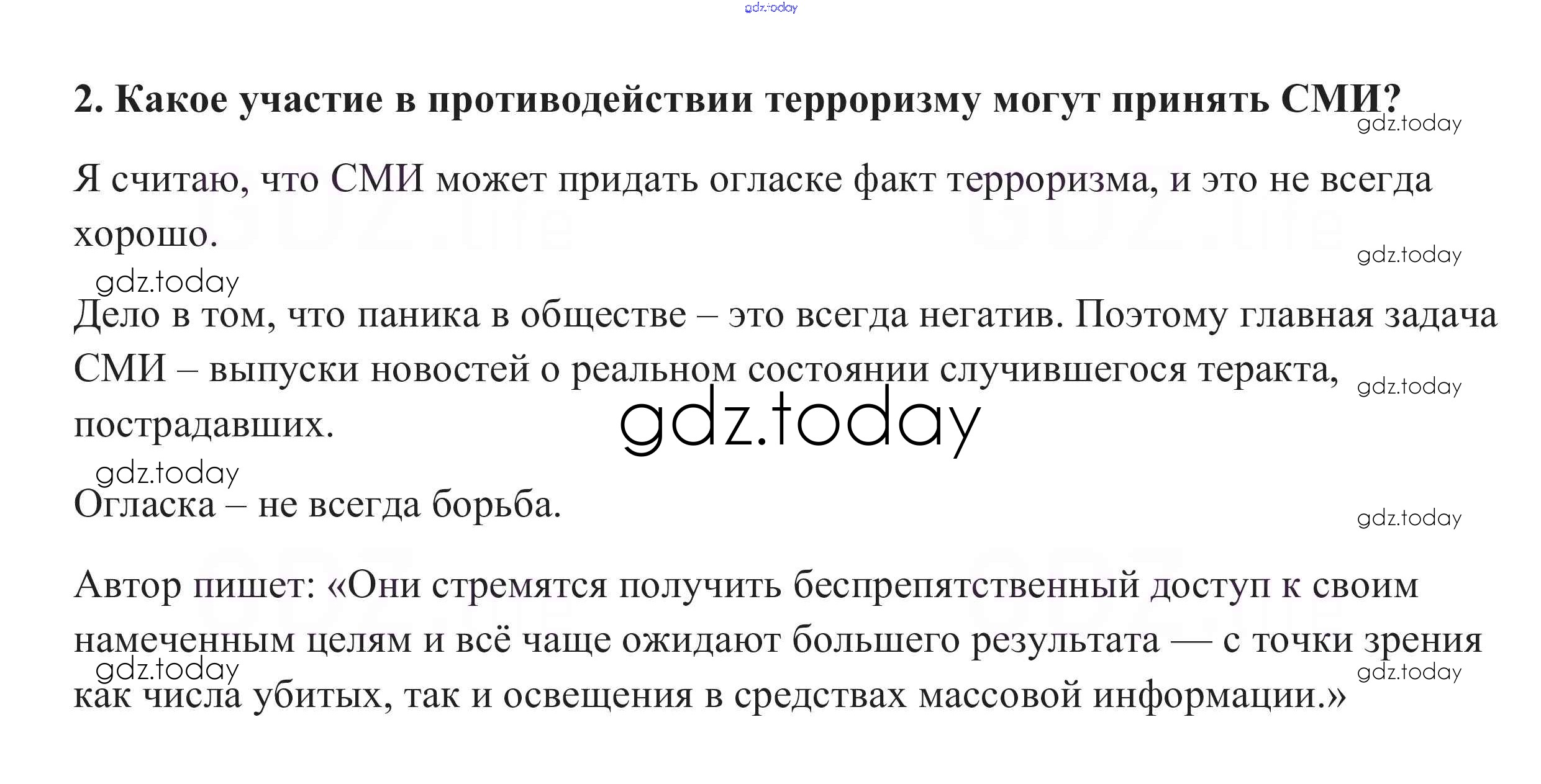 На страницах сайта gdz.today вы найдете учебный и вспомогательный материал, направленный на улучшения знаний школьной программы. ГДЗ - онлайн мир знаний Вопросы и задания к документу §9. Глобальная угроза международного терроризма 2 Учебнику по Обществознанию для 10 класса Боголюбов, Аверьянов Базовый уровень Просвещение 2015