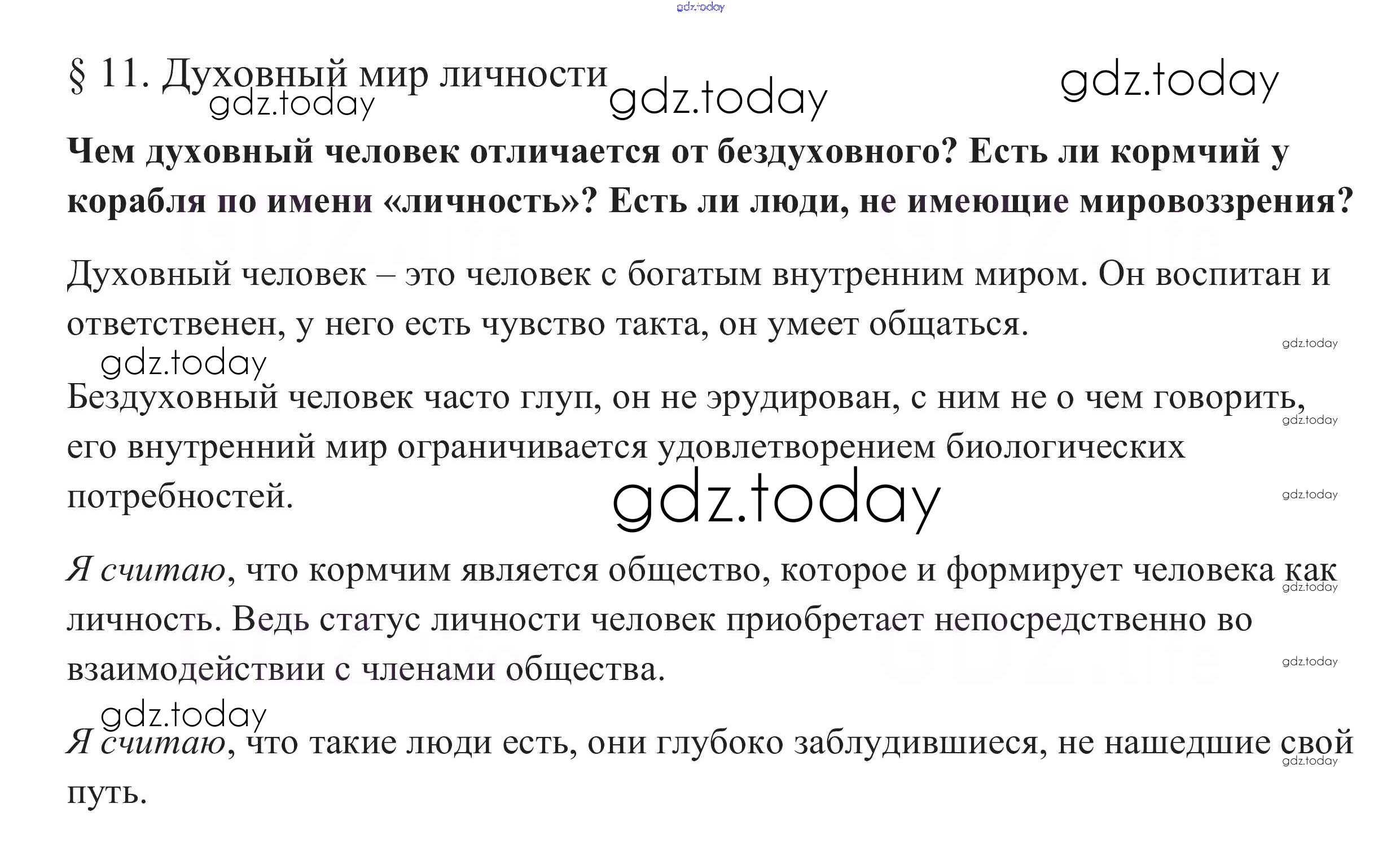 На страницах сайта gdz.today вы найдете учебный и вспомогательный материал, направленный на улучшения знаний школьной программы. ГДЗ - онлайн мир знаний В начале параграфа §11. Духовный мир личности 1 Учебнику по Обществознанию для 10 класса Боголюбов, Аверьянов Базовый уровень Просвещение 2015