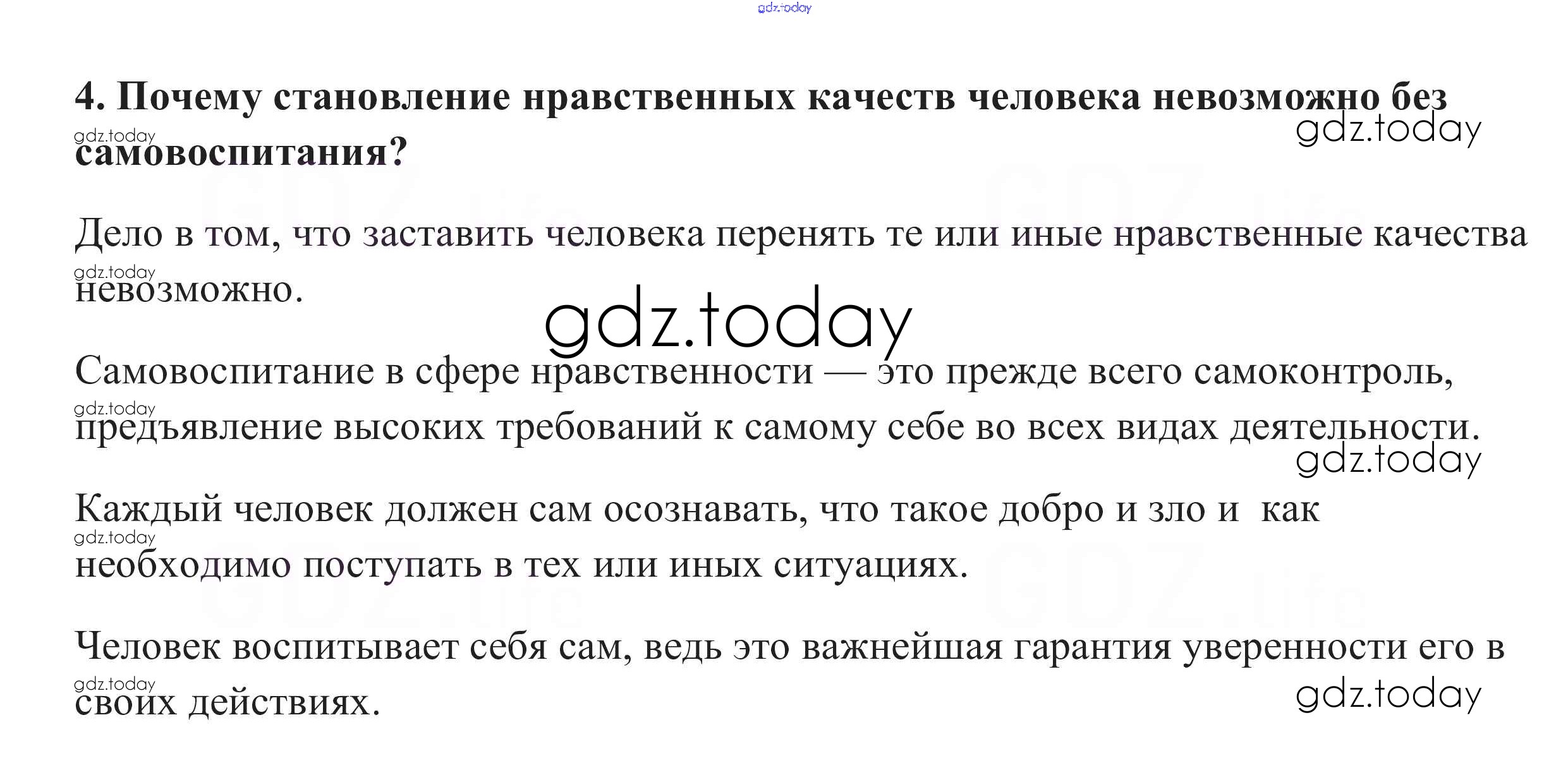 На страницах сайта gdz.today вы найдете учебный и вспомогательный материал, направленный на улучшения знаний школьной программы. ГДЗ - онлайн мир знаний Вопросы для самопроверки §11. Духовный мир личности 4 Учебнику по Обществознанию для 10 класса Боголюбов, Аверьянов Базовый уровень Просвещение 2015