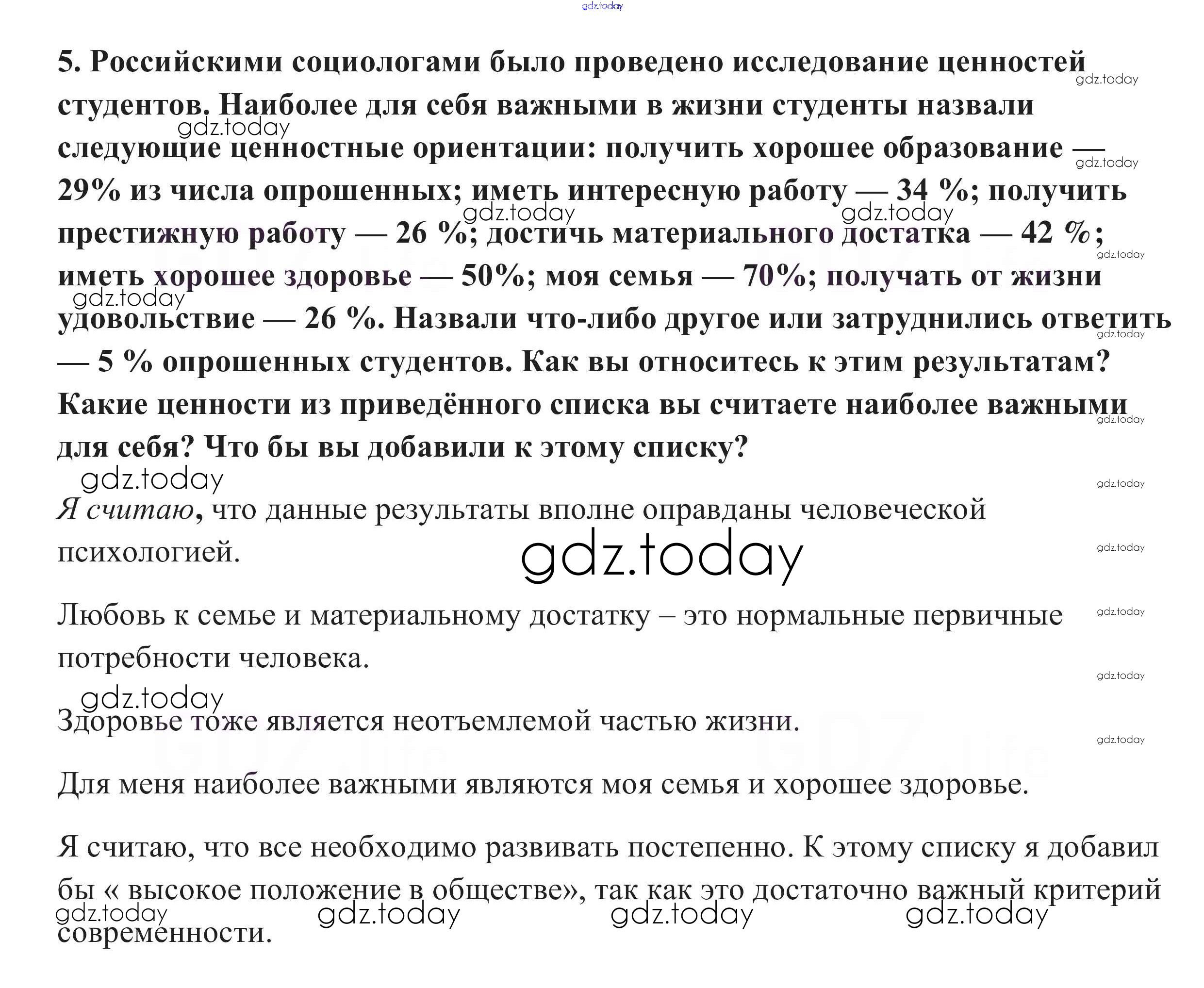 На страницах сайта gdz.today вы найдете учебный и вспомогательный материал, направленный на улучшения знаний школьной программы. ГДЗ - онлайн мир знаний Задания §11. Духовный мир личности 5 Учебнику по Обществознанию для 10 класса Боголюбов, Аверьянов Базовый уровень Просвещение 2015