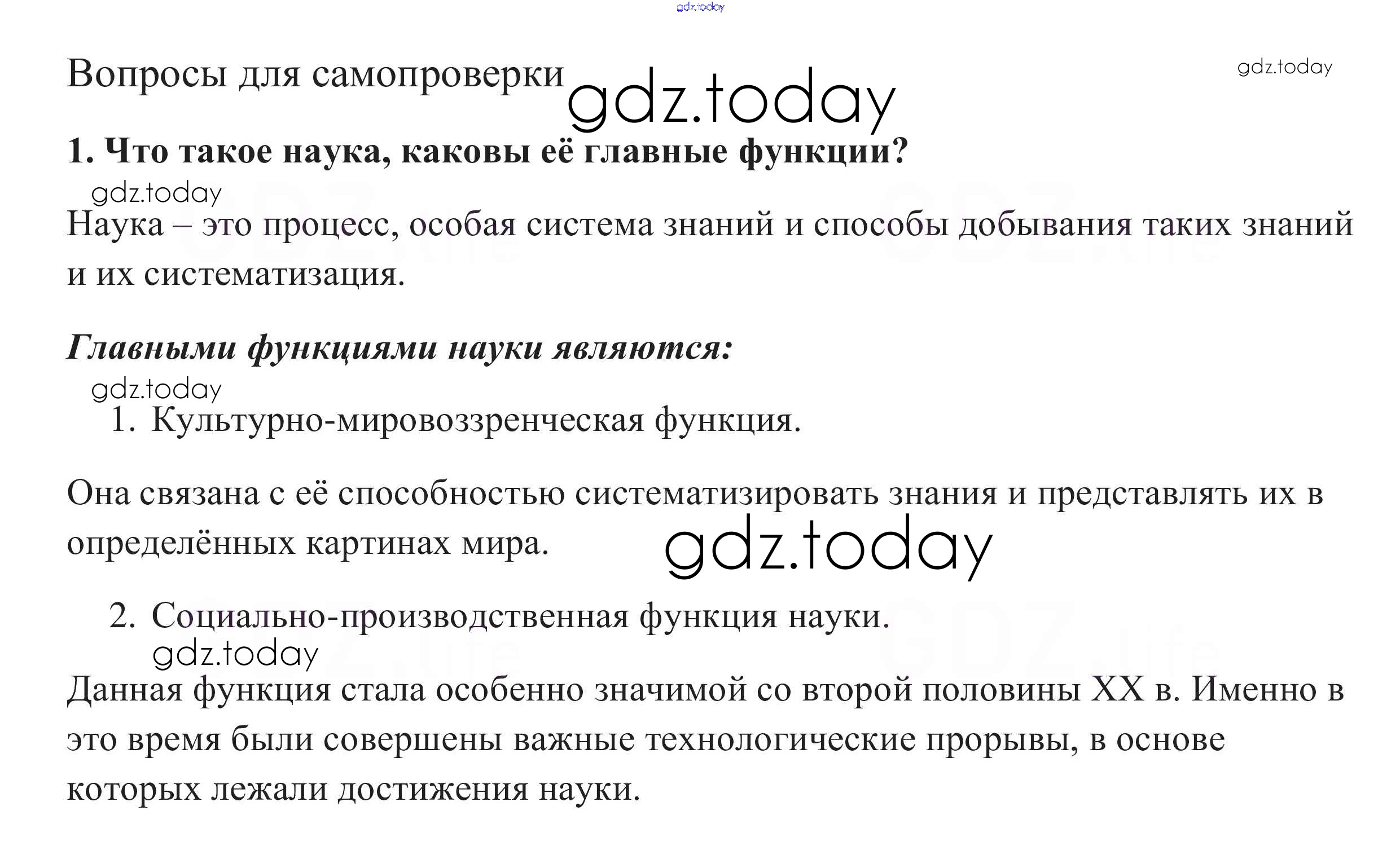 На страницах сайта gdz.today вы найдете учебный и вспомогательный материал, направленный на улучшения знаний школьной программы. ГДЗ - онлайн мир знаний Вопросы для самопроверки §13. Наука и образование 1 Учебнику по Обществознанию для 10 класса Боголюбов, Аверьянов Базовый уровень Просвещение 2015