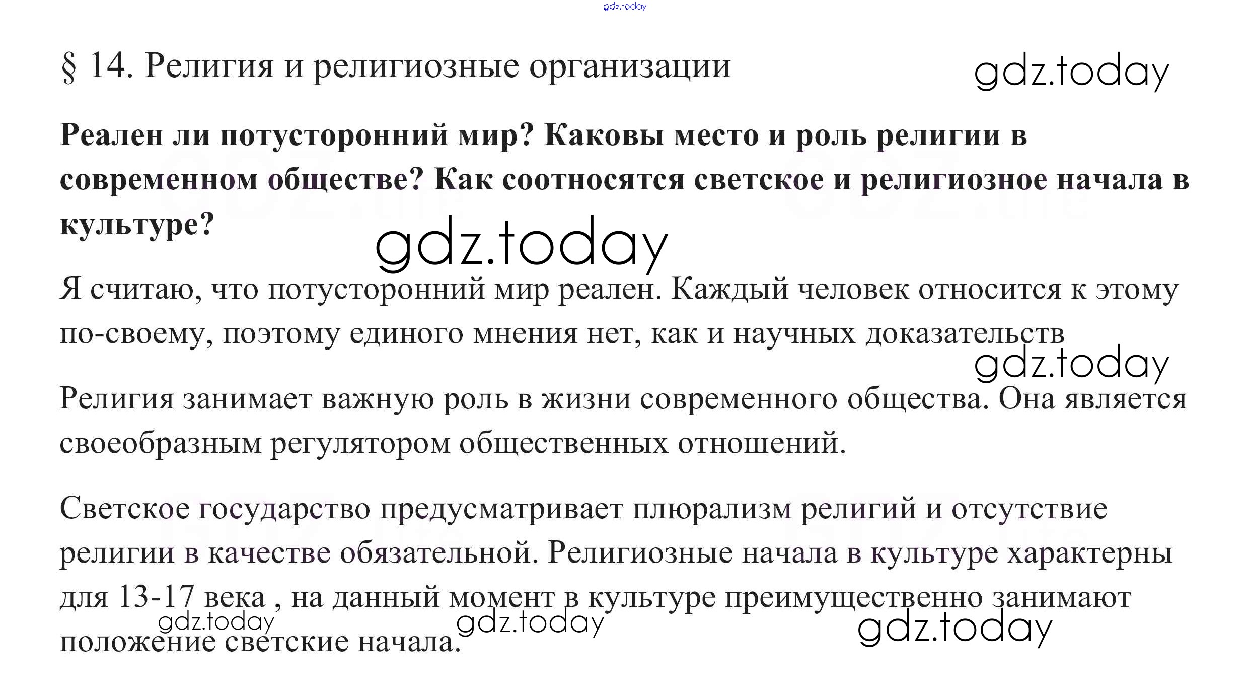 На страницах сайта gdz.today вы найдете учебный и вспомогательный материал, направленный на улучшения знаний школьной программы. ГДЗ - онлайн мир знаний В начале параграфа §14. Религия и религиозные организации 1 Учебнику по Обществознанию для 10 класса Боголюбов, Аверьянов Базовый уровень Просвещение 2015