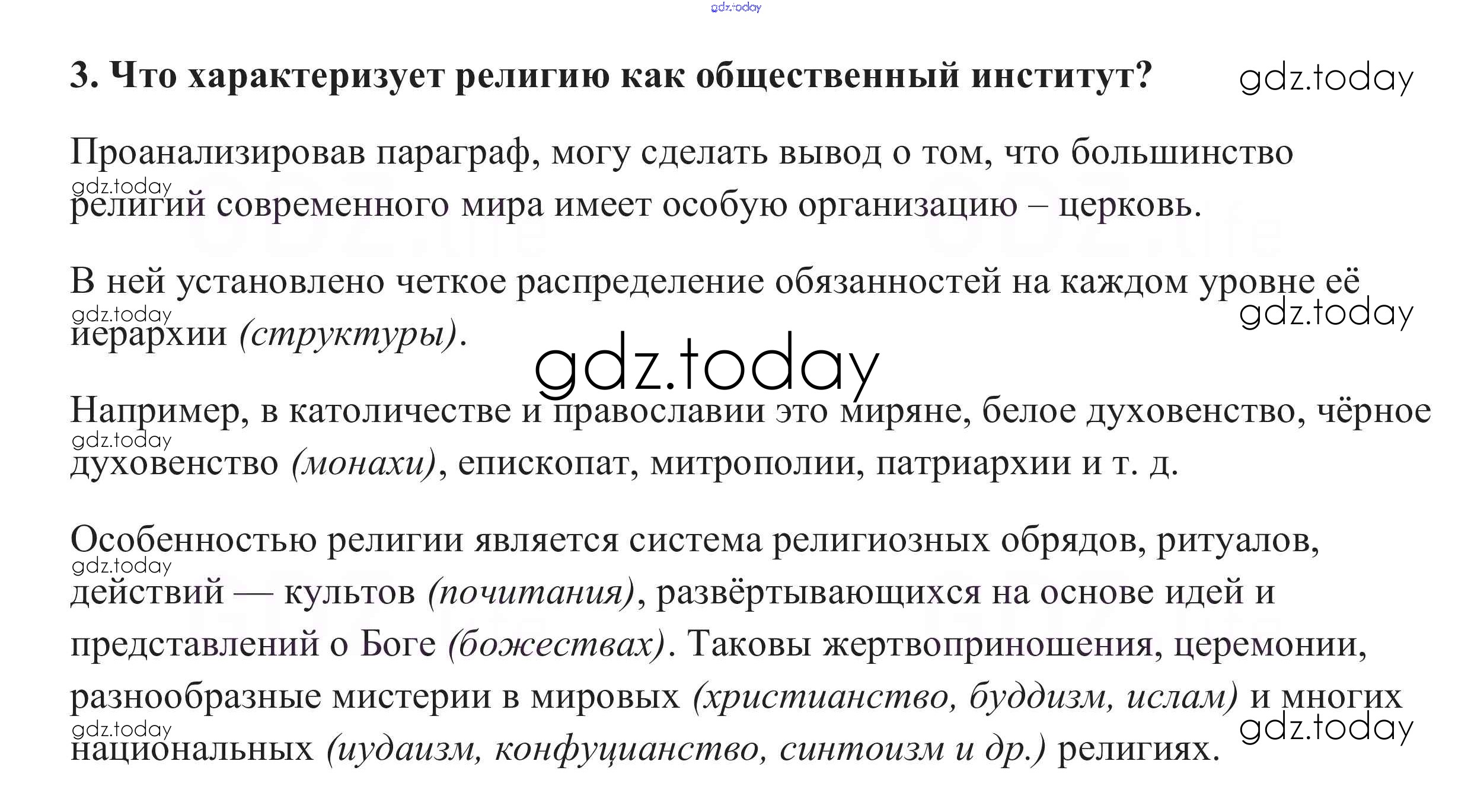 На страницах сайта gdz.today вы найдете учебный и вспомогательный материал, направленный на улучшения знаний школьной программы. ГДЗ - онлайн мир знаний Вопросы для самопроверки §14. Религия и религиозные организации 3 Учебнику по Обществознанию для 10 класса Боголюбов, Аверьянов Базовый уровень Просвещение 2015